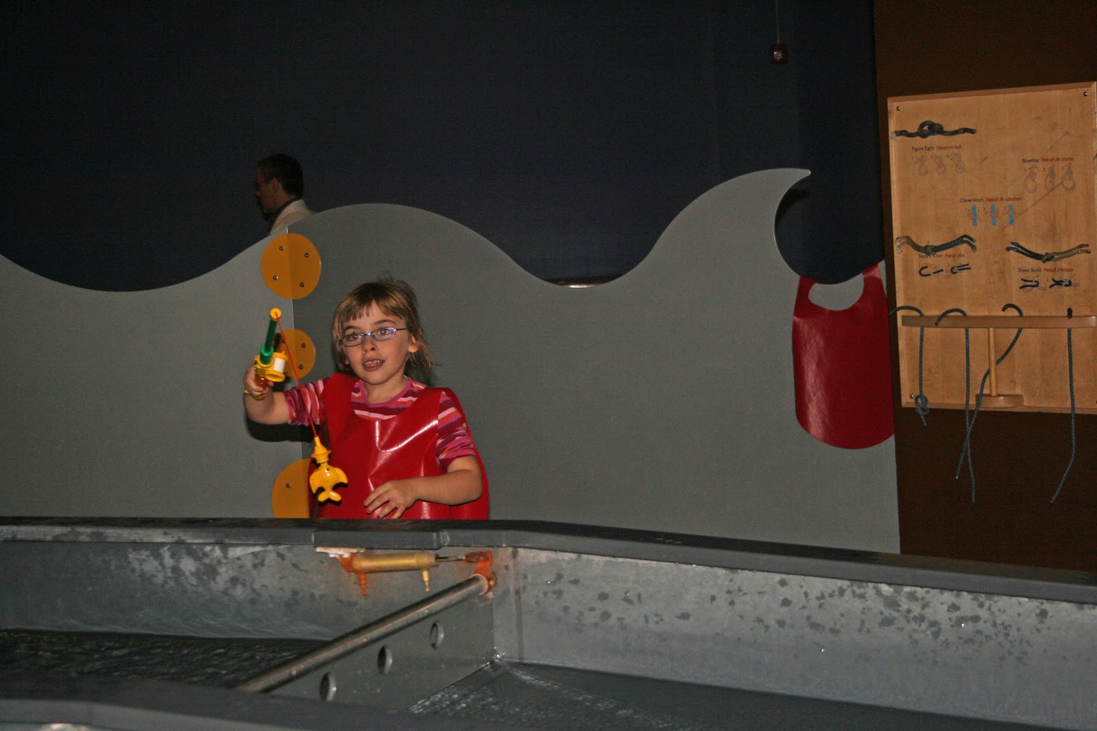 Right here you see a bunch of kids running around on the "water". There is a projection from the ceiling of a coy pond, as the kids run across it the water moves like they were stepping in it! Needless to say, this was a TON of fun for those involved. Funny thing was, Mike's camera took a picture of the reflection, mine didn't. When I took a picture you didn't see anything but kids running on the floor! Weirdest thing. I think it was my polarizing filter, it's supposed to remove surface glare, it did, I never saw anything on the surfaces I wanted to!